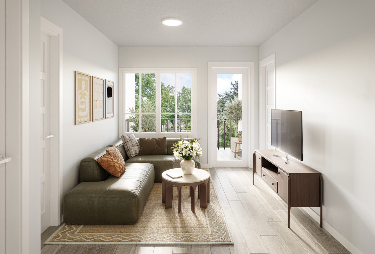 Living spaces are finished with durable luxury vinyl plank flooring and layered with contemporary lighting selected by professional designers. Knockdown ceilings and energy-efficient systems create comfortable, well-balanced rooms designed for everyday living and quiet moments at home.